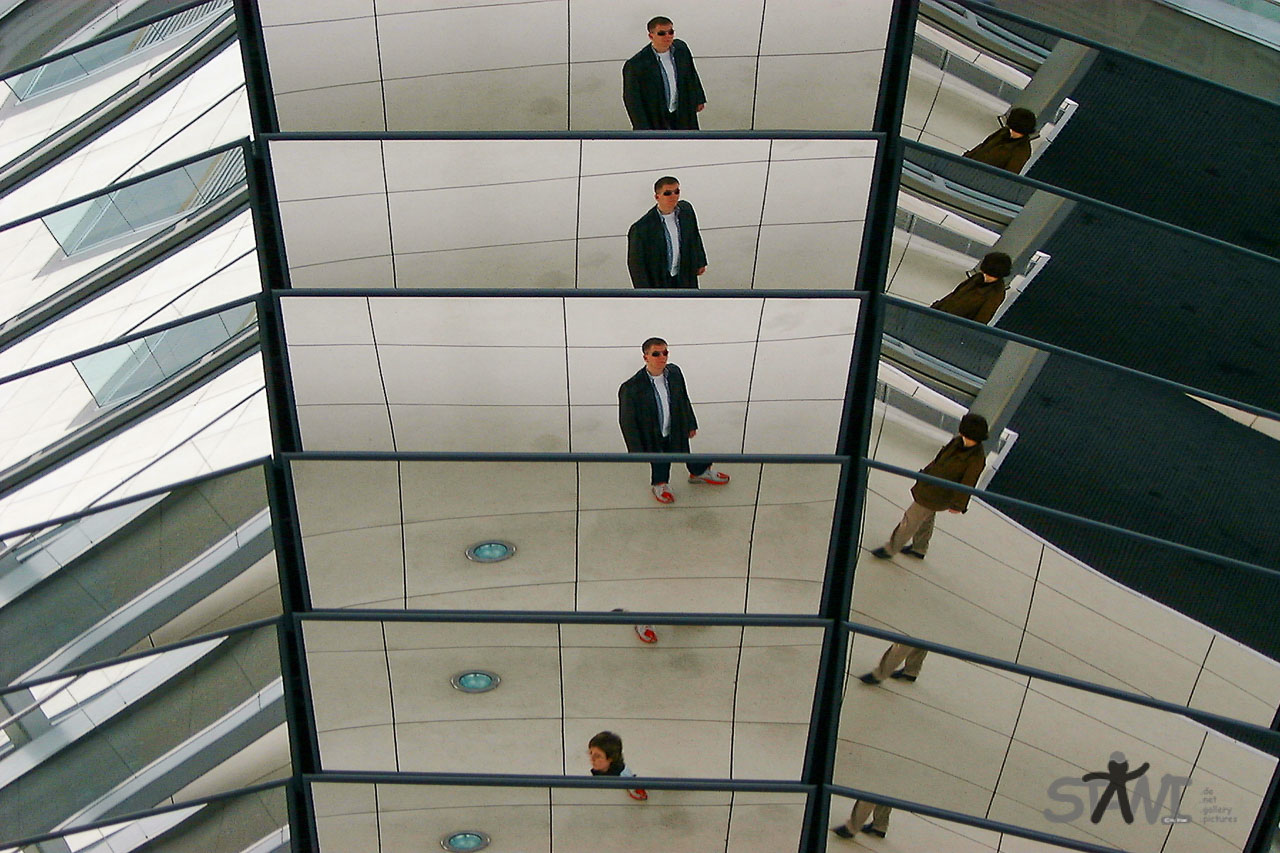 Die Spiegel haben die Aufgabe, Tageslicht in den Abgeordneten Saal zu bringen. So knipsten wir das eine oder andere Bild und waren dann zum Schluss überrascht wie lange wir uns dort auf gehalten haben. Gelohnt hat sich das auf jedem Fall.